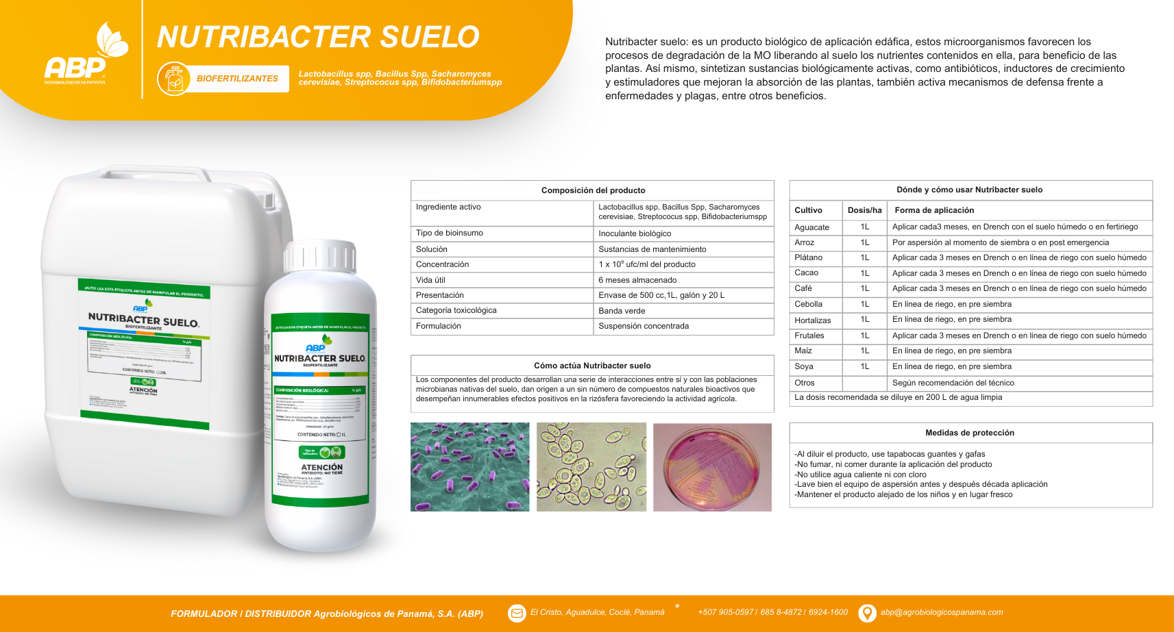 - Concentración: 1 x 109 ufc/ml del producto